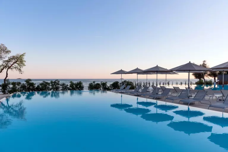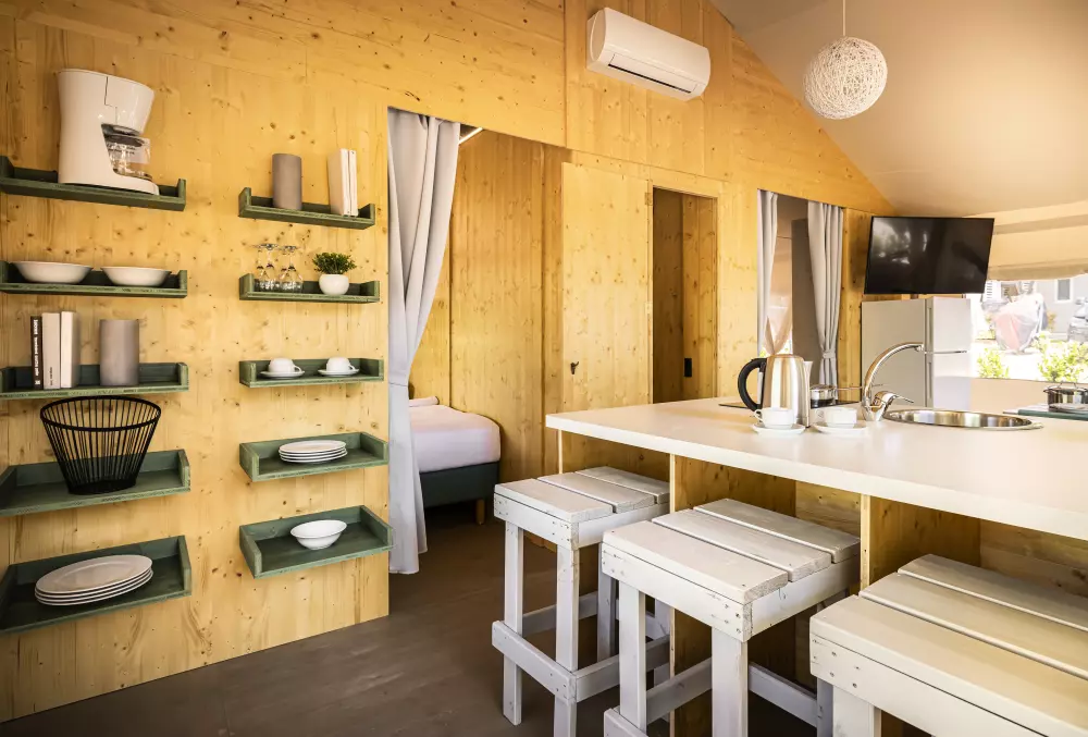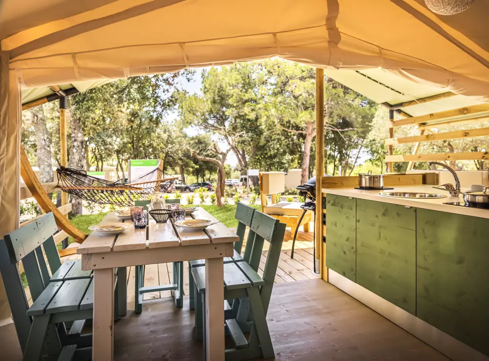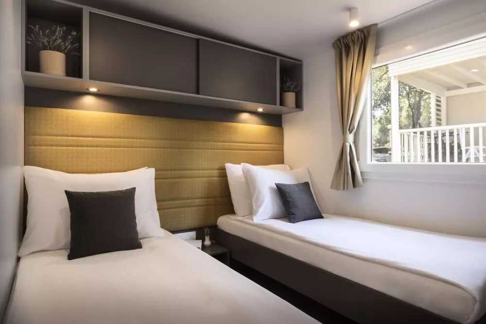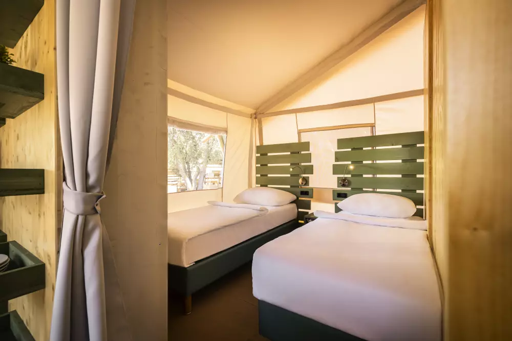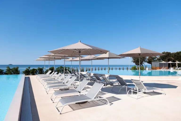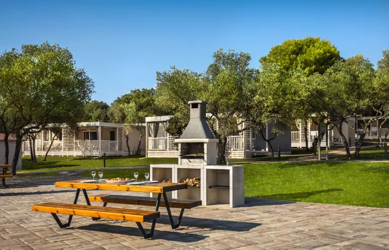 Camping Amarin ¡Es hermoso! El infinito mar azul claro, aquí y allá una isla perdida, árboles verdes a tu alrededor para que tus vacaciones en Croacia se vean así! Instala debajo de la sombrilla junto a la piscina para disfrutar de la vista, mientras tus hijos prueban el parque acuático o navegan en un bote de banana.