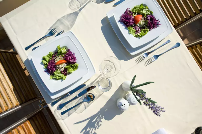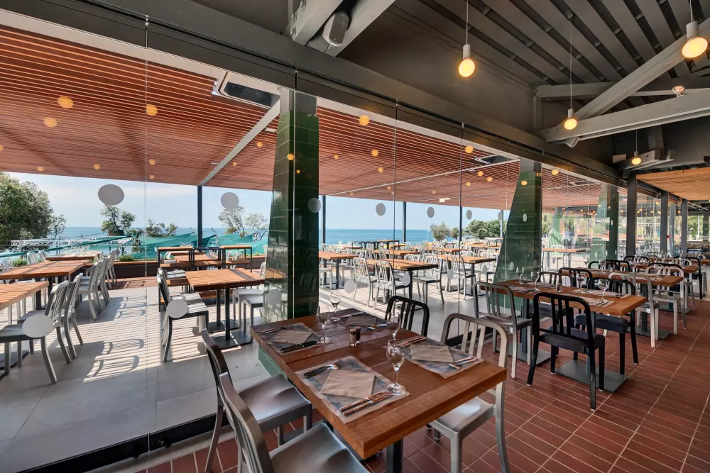 Buena comida y bebida, esa es la corona de tus vacaciones. El restaurante con vistas al mar es el lugar perfecto para cada pico sabroso, grande y pequeño. Olvidé uno.