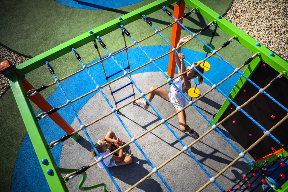 Hay más que hacer en el complejo del camping. Como tenis de mesa, mini golf, arquería, salto trampolín y un