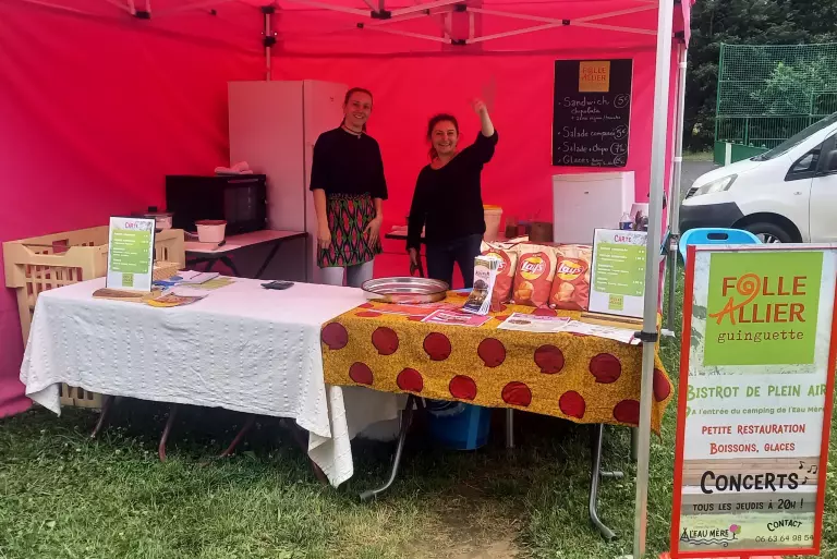 Vous trouverez aussi surplace la Guinguette Folle Allier bar/petite restauration avec produits locaux et petit services d'épicerie, avec chaque jeudi soir concert, cinéma ou théâtre - pendant la saison estivale.