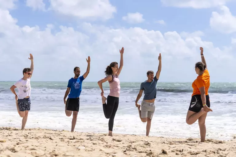Clases de fitness, turnos petancos, yoga o ping-pong, todos los entusiastas del deporte encontrarán lo que están buscando! En la puerta del camping, los clubes de deportes acuáticos le permiten enseñarle a practicar surf, windsurf o paddle. Y si te gusta explorar un nuevo destino con el viento en el pelo, alquile una bicicleta en el camping y despegue en los 100 km de ruta de ciclo de la isla!