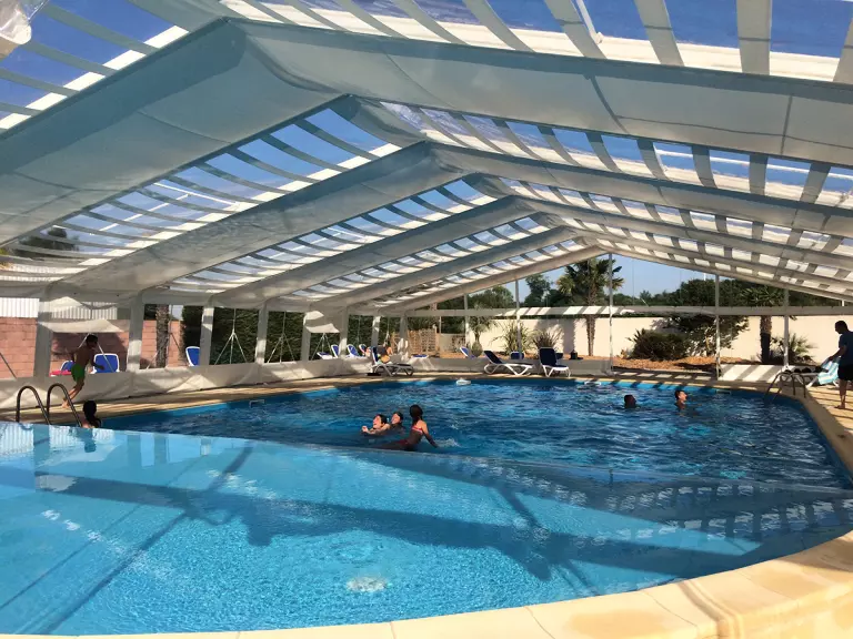 Nuestra zona acuática le da la bienvenida para un pequeño refresco durante el día o para lagarto en las sillas de cubierta junto a la piscina. El parque acuático está compuesto por una gran piscina cubierta y climatizada, 10x15m, para divertirse o relajarse gracias a unos pocos aparatos. Para los más pequeños, una piscina con juegos de agua (jetas, patos...) está a su disposición para que florezcan en nuestro espacio acuático. Por no mencionar nuestras grandes diapositivas: una diapositiva deslizante y dos pentagliss para sensaciones máximas. Pasará momentos inolvidables y para su comodidad, nuestra piscina está abierta y climatizada del 18 de abril al 20 de septiembre.
