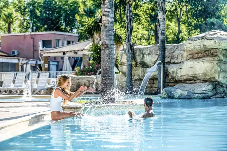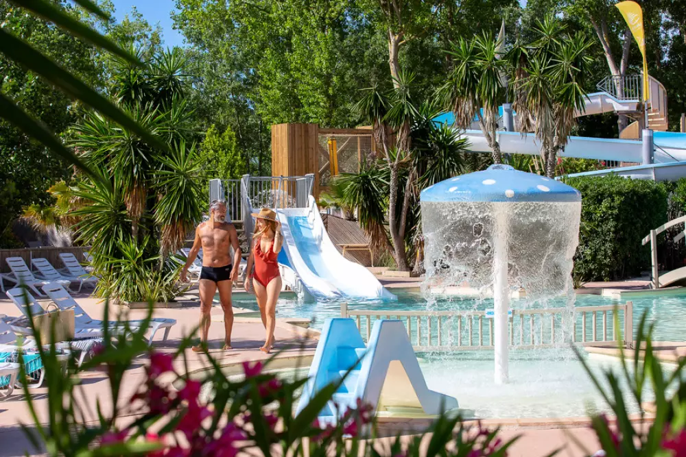 - Parque acuático : 500m2 con piscina climatizada de onda, piscina de remo, chorros de hidromasaje, tobogán, pentaglisses - cortos de baño no permitido
