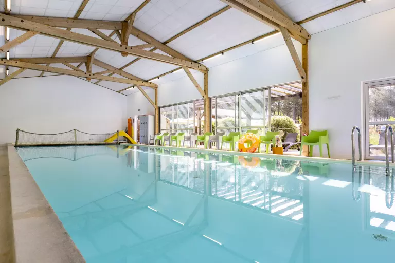 En el recinto podrá disfrutar de un espacio acuático de 400 m² con piscina cubierta y exterior climatizada, piscina de olas, piscina infantil y zona de juegos acuáticos con chorros de agua para el placer de grandes y pequeños.