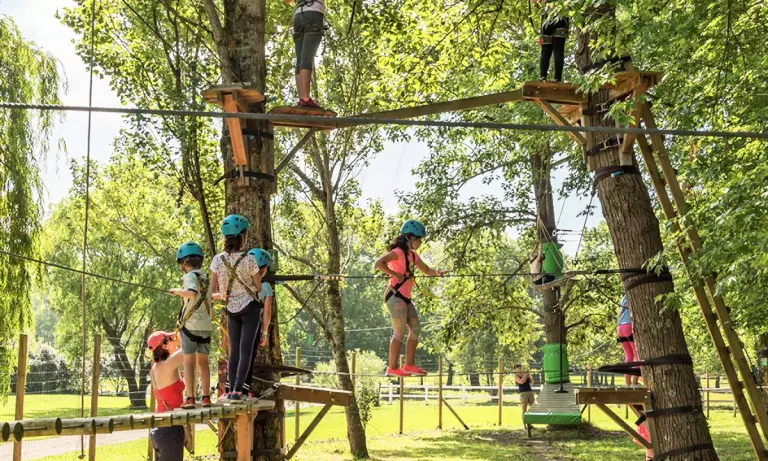 ¿Aviadores? Tres cursos de escalada reales presentes en el camping con la súper cremallera de 200 m sobre el parque acuático! (De 5 años, abierto todos los días en julio/agosto (excepto sábado) y los miércoles, fines de semana y días festivos en temporada baja, con suplemento).