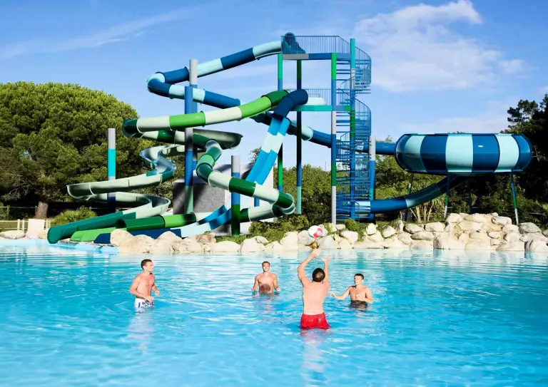Las instalaciones 5* están en sintonía con un suntuoso parque acuático de 4000 m2 compuesto de 2 espacios con ambientes complementarios, una dinámica con un gran baño y piscina de remo, una llanura de juegos de agua con un buen diseño y para los más grandes, toboganes con sensaciones para toboganes que se descomponen! y el otro, más tranquilo, con una piscina cubierta y una zona balneo adecuada para la relajación (acceso sujeto a condiciones).