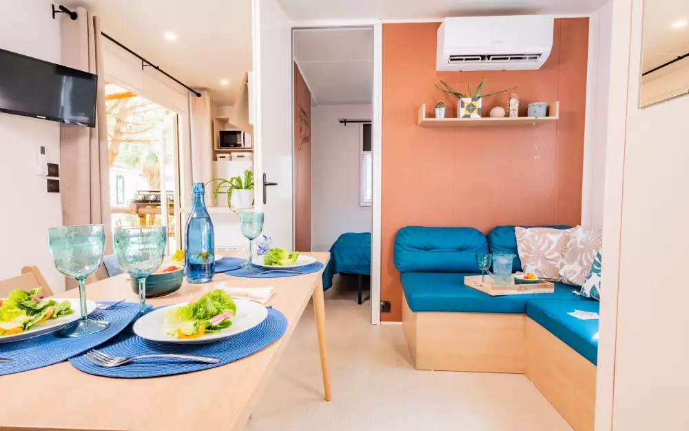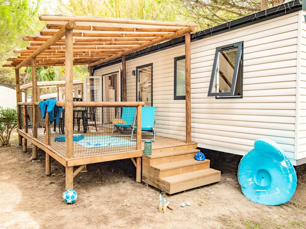 En un hermoso entorno verde, un poco lejos del bullicio y el bullicio, alojarse en el camping Le Bosc 4*, a solo 3 km del mar, situado a las puertas de Saint-Cyprien, uno de los resorts más bellos del Mediterráneo. Con sus 6 km de playa de arena, su pendiente natural en una suave pendiente que conduce a la natación con seguridad, el ambiente es ideal para vacaciones familiares.