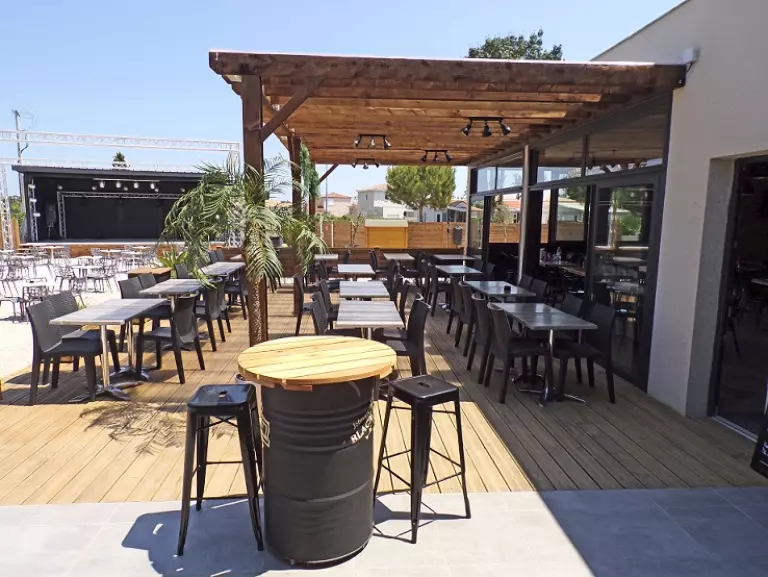 En el corazón del camping, "El Loco" es un hermoso espacio de vida, "El lugar para estar" con una tendencia de inspiración industrial, le da la bienvenida para una bebida, almuerzo o cena. Real pulmón del camping, "El Loco" cumplirá todos sus deseos o casi, ofreciendo varios espacios de comedor: