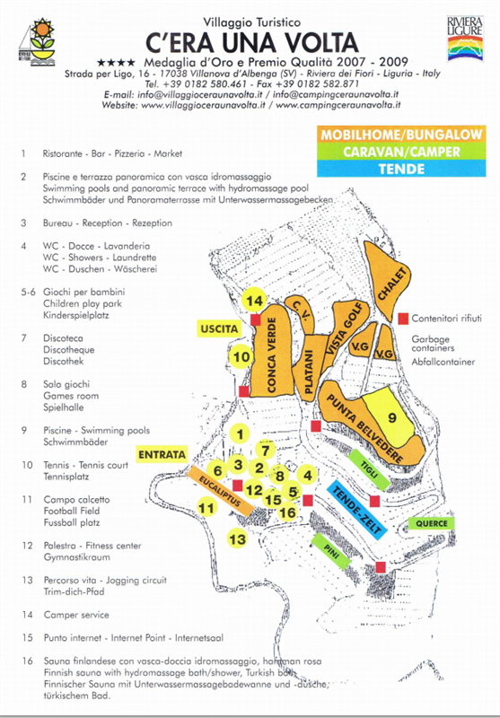 Mostrar mapaCITR 009068-VIT-0001 The founders of this holiday village and camping, Diomedi Pierfranco and Giovanni Fiori, wanted to keep this corner as it was at the beginning, at only 6 km. from Alassio, with a wonderful panoramic view, right as it was in order to welcome its guests.We have places for tents and caravan, bungalows and mobilhomes with three rooms double toilet airco and sat tv.. In July and August 4 swimming pools, multilanguages animation staff for children and families.